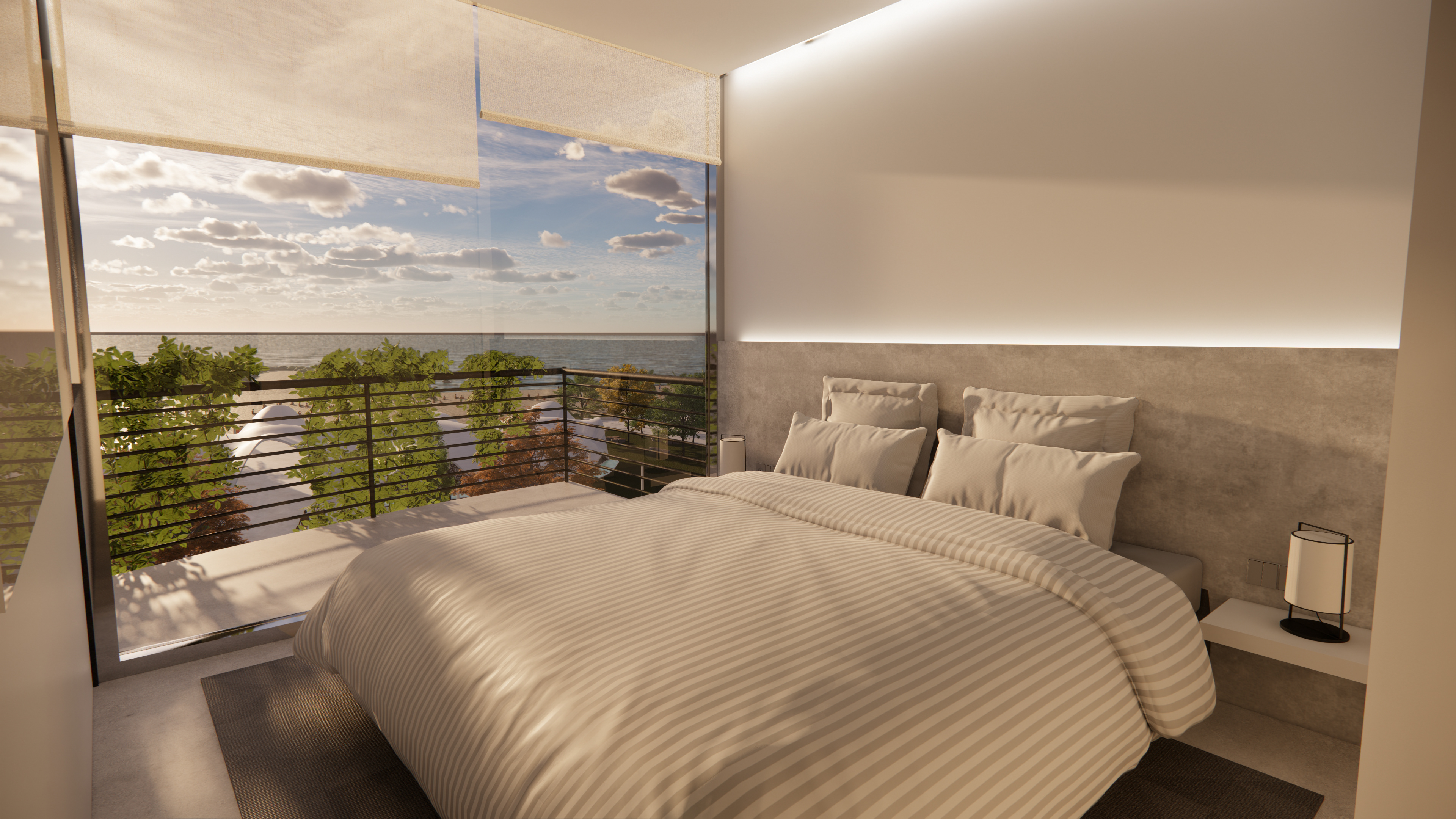 Para conseguirlo, se plantea una envolvente totalmente externa del edificio y anclada a este por fijaciones mecánicas en los frentes de forjado. Dicha envolvente solo la encontramos en la fachada oeste y en los laterales, para una mayor protección, aunque si nos ponemos perpendicular al edificio, veremos como la envolvente casi desaparece, pues está formada de perfiles verticales dispuestos como si se tratara de lamas. Además, encontramos la misma envolvente alrededor de los dos núcleos de escaleras de cada edificio, pues aportarán seguridad al usuario.